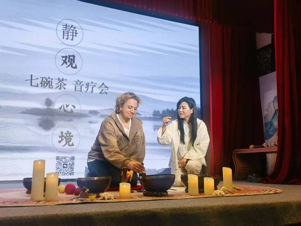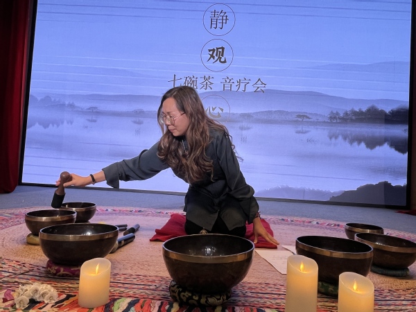 本次活动内容丰富,共分为音乐疗愈冥想、禅拍体验以及茶疗体验三个部分。在活动现场,首先在音疗师的引导下,大家深入体验了颂钵音乐冥想,在悠扬的颂钵声中,享受到与自我对话的宁静时光;随后,通过禅拍体验,进一步加深了对身心调节的理解;最后,茶艺师细致讲解了茶文化中的“静心哲学”,在轻柔音乐的陪伴下,从第一杯至第七杯茶,大家随着茶艺的节奏,逐步静心,深刻感受茶的韵味与魅力。悠扬的音韵之声渐渐使整个现场宁静下来,只剩下品茶时那份淡然的茶律之声。