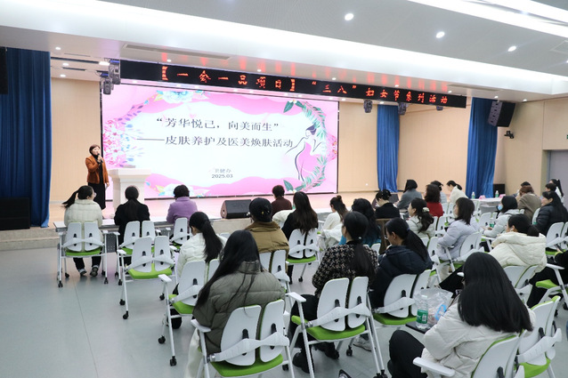 为庆祝第115个“三八”国际劳动妇女节,3月6日下午由校工会、妇联主办,卫健办承办的一会一品项目“三八”妇女节系列活动:“芳华悦己,向美而生”——皮肤养护及医美焕肤活动在路演大厅举行。本次活动特邀徐州医科大学附属医院整形外科主任张爱君团队,为女教职工带来了一场关于美丽与健康的盛宴。
