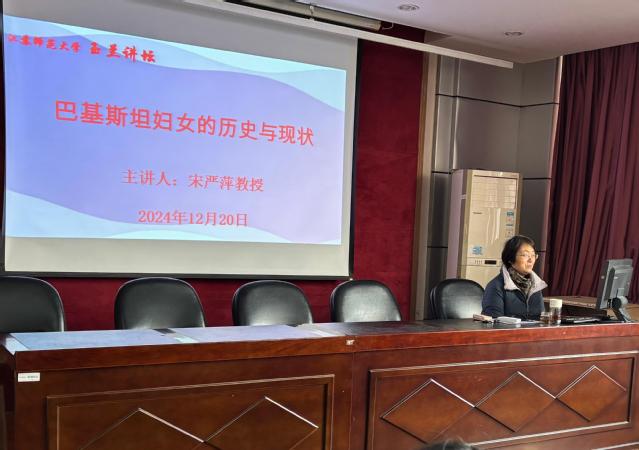 为持续推动我校妇女研究工作创新发展,丰富江苏省“妇女/性别研究学术月”活动内容,我校于12月20日举办“玉兰讲坛·巴基斯坦妇女的历史与现状”专题讲座。活动由江苏省“一带一路”妇女发展研究基地、校妇联工会、女教授联谊会主办,历史文化与旅游学院宋严萍教授主讲。校妇联负责人和相关学院的师生代表参加了活动。