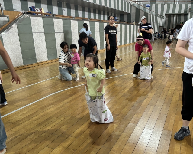 本届亲子运动会主题是“运动悦童心 亲子伴成长”,活动预告一经发布,就受到广大青年教职工的热切关注和积极响应。运动会分为儿童组和成人组两个组别,参赛选手全部由学校教职工及6岁以下的子女组成,最小的孩子只有6个多月,部分家庭携两位子女参赛。根据选手的年龄特点,两个组别分设了袋鼠跳、吉祥娃娃、推铁环、拔河等10多个妙趣横生的项目。家长和孩子们并肩面对每个游戏的挑战,小运动员们天真精彩的表现和家长重温童乐的喜悦相映成趣,展现了亲情互动的欢乐瞬间。加油声、喝彩声此起彼伏,充满了体育馆的每个角落。