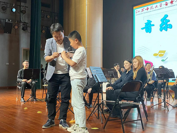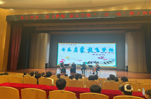 活动共分为三个环节。第一环节为民族乐器展示环节。器乐系袁琦老师为大家介绍了民乐的历史、现当代作品的发展和民族器乐不同演奏形式的新面貌。师生们通过对二胡、古筝、琵琶等乐器的讲解和展示。演出乐曲有小型民族室内乐《渔舟唱晚》,二胡二重奏《良宵》,最后在一曲《赛马》中将现场气氛推向高潮。第二环节为弦乐器环节。器乐系杨怡萱老师先向大家介绍了提琴族乐器并请同学们逐一展示各乐器的音色特点,之后对重奏作品进行赏析讲解。最后同学们为观众演奏了《天空之城》《一步之遥》《我的太阳》。第三环节为管乐器环节。崔飞副院长向大家介绍了小型管乐室内乐的各种乐器,并对各种管乐器进行了音色的展示,现场还进行了识乐器及试乐器的互动,最后在管乐团演奏大家耳熟能详的中国经典动漫作品中结束了整场活动。