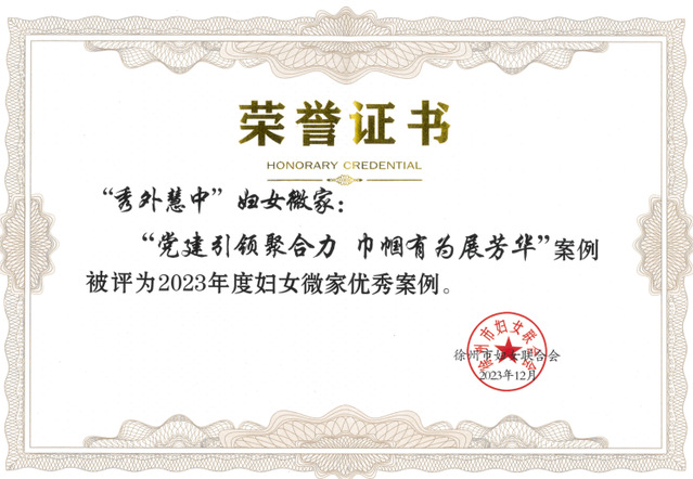为深入贯彻落实中国妇女十三大、省妇女十四大精神,充分发挥妇女儿童之家、妇女微家凝聚妇女、服务社会的阵地作用,进一步鼓励先进、宣传典型,经各县(市)区、各单位推荐、评审,徐州市妇联对12个妇女儿童之家优秀服务案例、17个妇女微家优秀服务案例予以通报表扬。我校国际学院“秀外慧中”妇女微家“党建引领聚合力 巾帼有为展芳华”案例获2023年度妇女微家优秀服务案例。