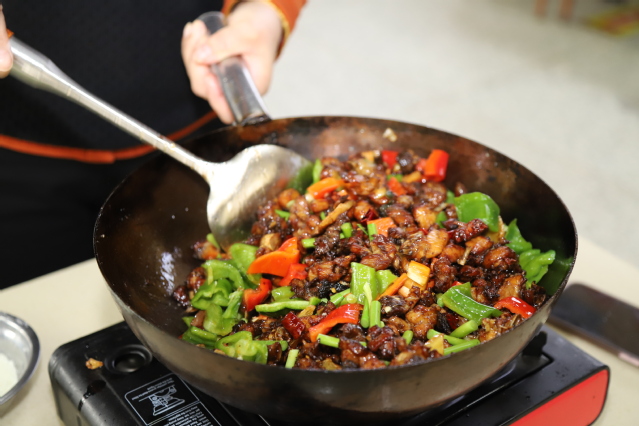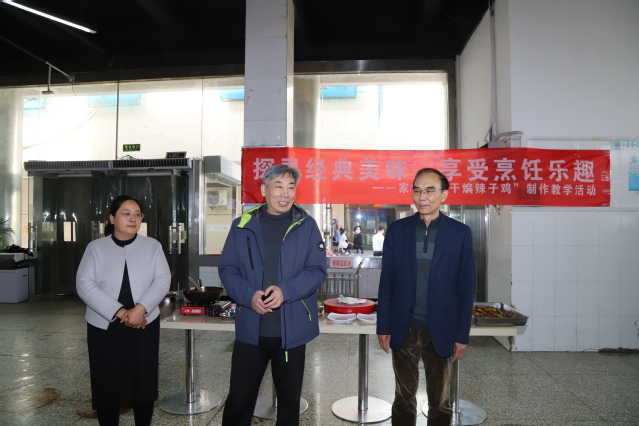 活动伊始,汪主席指出美食文化在高校后勤服务中的重要性,通过烹饪教学活动丰富教职工的业余生活,增进同事间的交流与合作,通过此次活动,能使大家掌握一门新的烹饪技能,更能够增进同事间的友谊与协作。随后,刘主任为大家详细介绍了辣子鸡的历史渊源、食材选择以及烹饪技巧。辣子鸡不仅是一道美味佳肴,也承载着丰富的文化内涵。在刘主任的带领下,大家纷纷动手实践,从食材腌制准备到火候调节掌握,每一个环节都认真细致。整个活动现场弥漫着香气四溢的美食气息。大家互相交流着烹饪心得,分享着制作过程中的点滴趣事,共同感受着美食带来的快乐与满足。经过一段时间的烹饪,一盘盘色泽鲜艳、香辣可口的辣子鸡陆续出锅,香气四溢,令人垂涎欲滴。