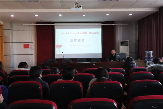 根据校“一会一品”活动工作安排,11月20日下午,由校工会、妇联主办,历史文化与旅游学院承办的“强文化自信、展玉石之美——翡翠赏鉴体验”(第一期)活动“翡翠鉴赏基础知识讲座”在16号楼402报告厅举行。讲座邀请刘效彬副教授主讲,全校30多名教职工参加了活动,工会主席尹成法主持活动。