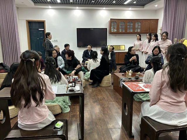 我校工会、妇联主要负责人就机构设置、特色亮点等调研内容先后作了汇报,双方与会人员还围绕工会、妇联工作的实际情况以及今后工作思路等进行了充分交流。座谈会后,与会人员观摩体验了工会妇联特色项目“一会一品”女教职工扎染活动、雅润女子学堂女大学生茶艺展示活动。体验感受学校浓郁的校园文化氛围与师生朝气蓬勃的精神风貌。