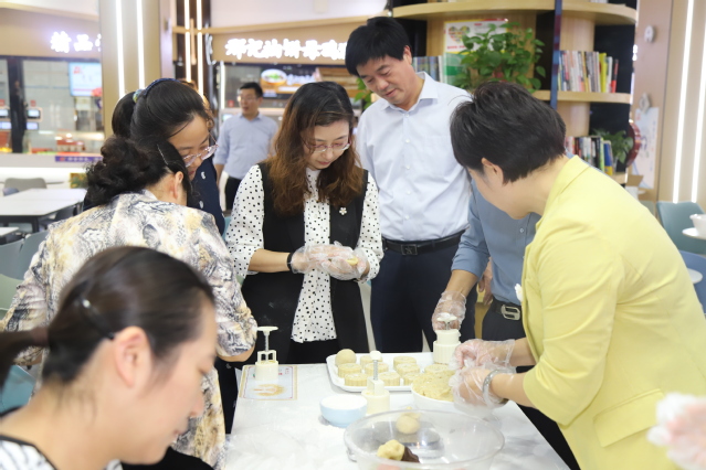 9月27日下午,由校工会、妇联主办,后勤集团工会承办的“妙手美食汇”系列之传统月饼制作教学活动在泉山校区玉泉河餐厅举办,来自全校不同单位的近40名教职工参加了活动。校工会主席王作权、后勤集团党委书记蒋国杰和校妇联主席裴笛,应邀与教职工同乐,共同体验制作传统美食的乐趣。本次活动由后勤集团饮食服务中心副主任、高级厨师刘保国带领大家一起进行传统月饼的制作。