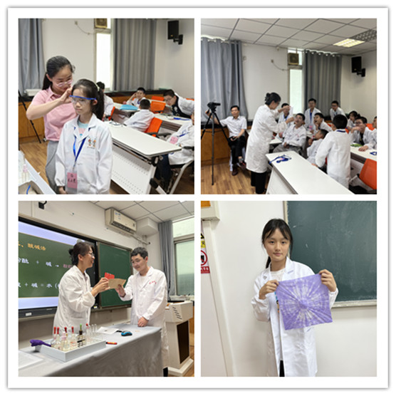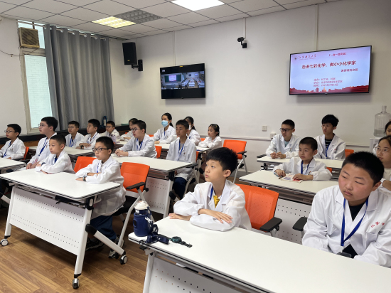活动内容主要由科技讲座“化学元素的奇妙世界”、实验室安全培训;化学魔术实验;小小化学家研学实验三大部分组成。小朋友们和老师一起走进化学的奇妙世界,聆听化学趣味故事,惊叹小小的化学魔术实验,亲身体验中国传统的染色技艺,整个活动过程中小朋友们在老师的带领全身心的投入到这场趣味的七彩化学特别之旅中,脸上洋溢着渴望探索实践的笑容,积极参与,活动氛围十分热烈。