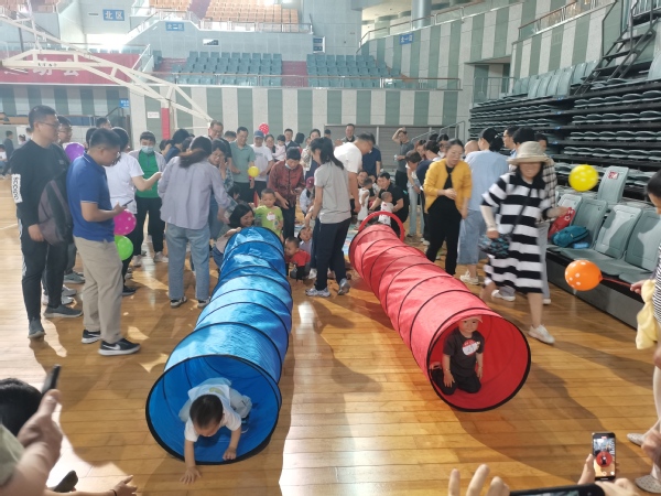 本届运动会以“运动悦童心,亲子伴成长”为主题,根据儿童年龄特点设置三个组别,量身打造11项寓教于乐的运动项目。活动现场,动感小精灵组的萌娃爬行穿越,憨态可掬;动感小飞侠组中教职工亲子配合跳跃,默契十足;动感小超人组的儿童以铁环竞技,充分展现运动天赋;趣味十足的拔河赛中,家长们奋力拼搏,孩子们加油助威,欢声笑语响彻场馆,充分展现亲子互动的温馨氛围。